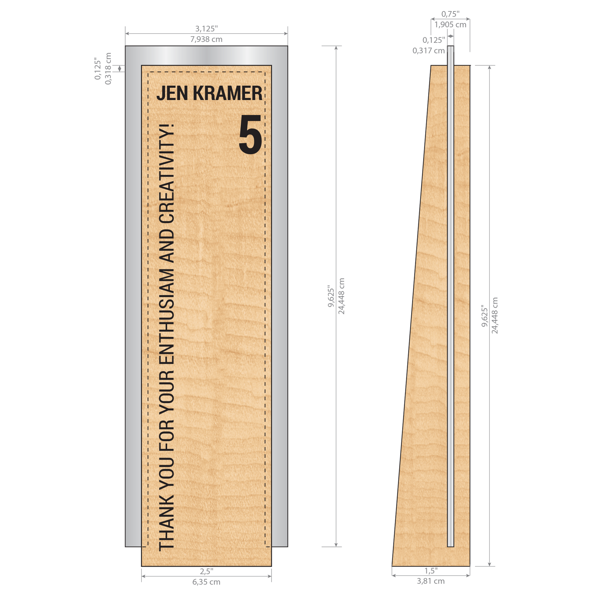 Your text and logo(s) are printed on the front surface of the award