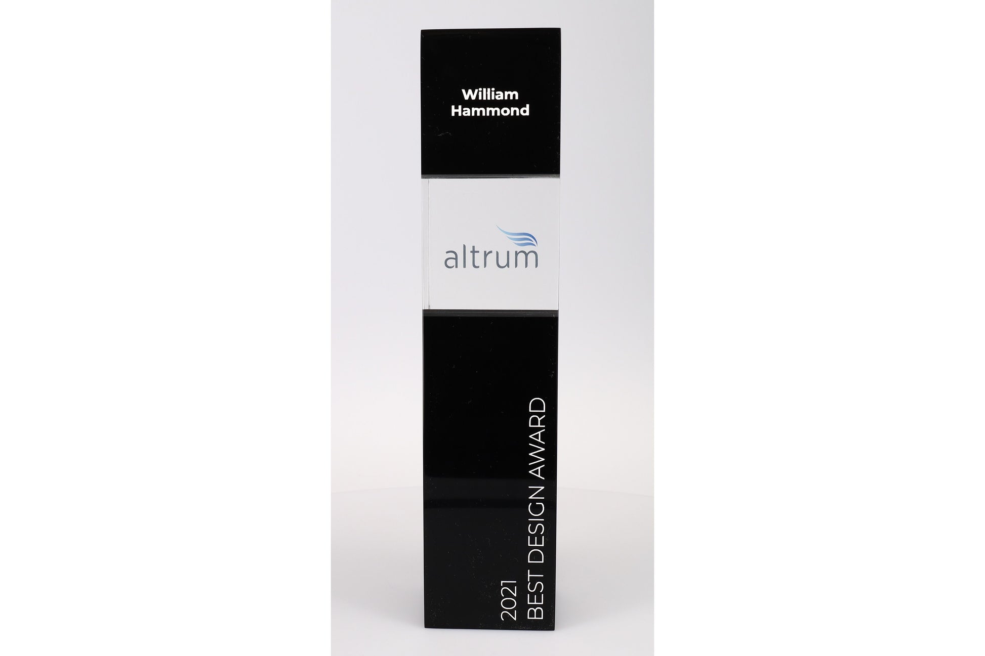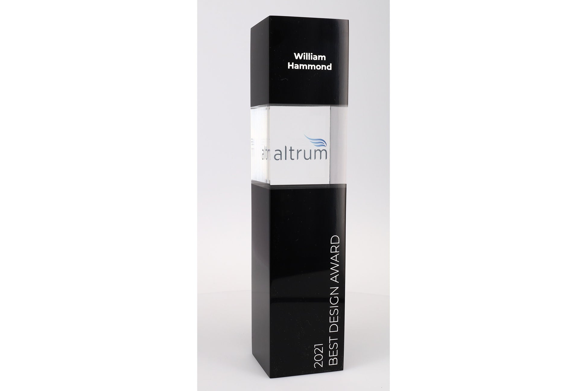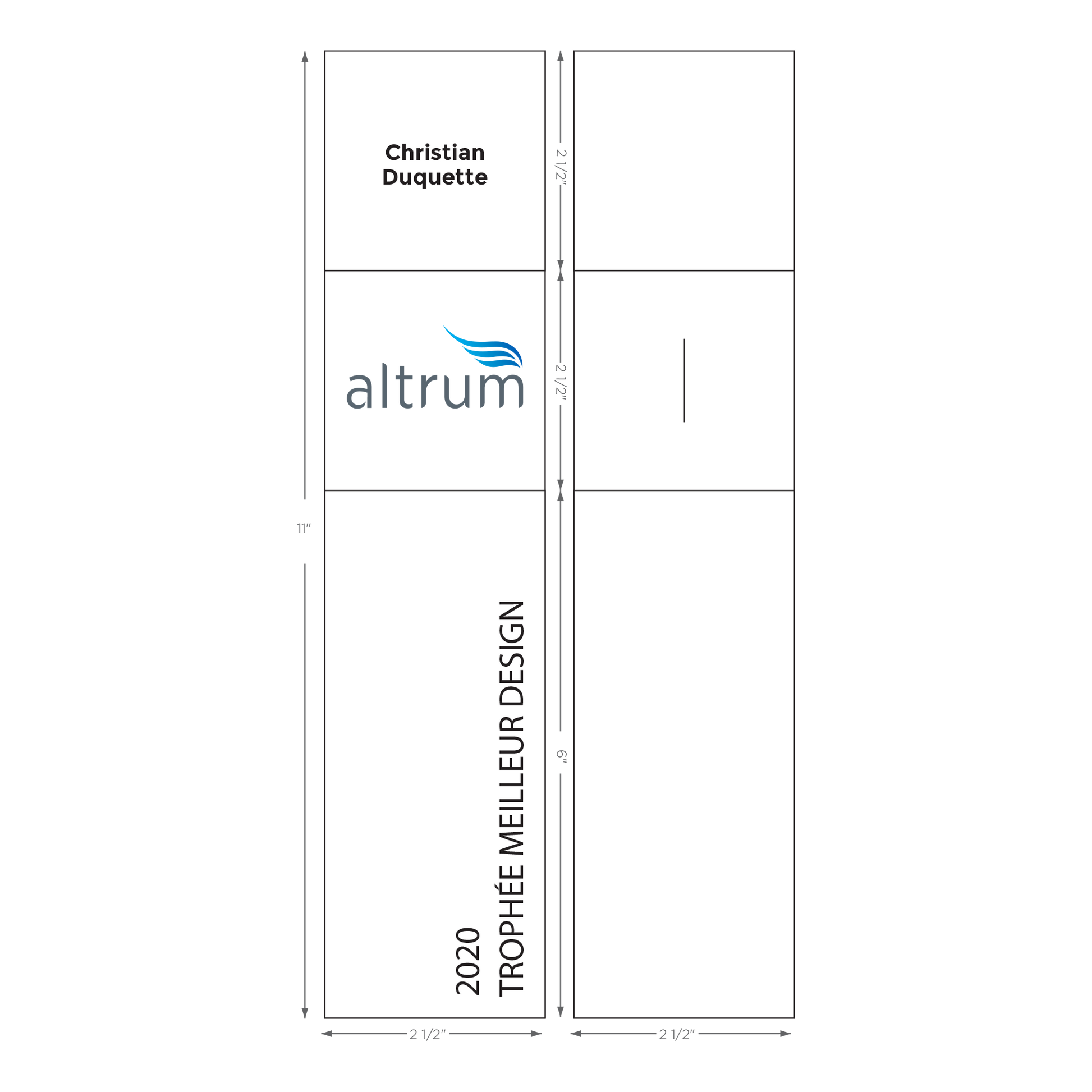 This sleek, modern award is perfect for your galas and corporate events. At 11" tall, this imposing award will have the recipients in awe. The Toronto award is composed of an opaque acrylic base and top, with a clear acrylic cube in between. You can add an image or logo inside the clear cube, and print your text on top of the opaque acrylic sections. This award it made of premium materials and will remain intact for years to come.